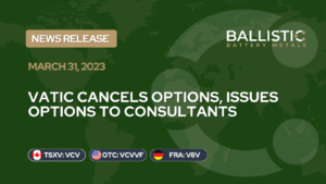 Vancouver, B.C., March 31, 2023 – Vatic Ventures Corp. (the “Company” or “Vatic“) (TSXV: VCV; FRA: V8V; OTCQB: VCVVF) announces that it has cancelled 250,000